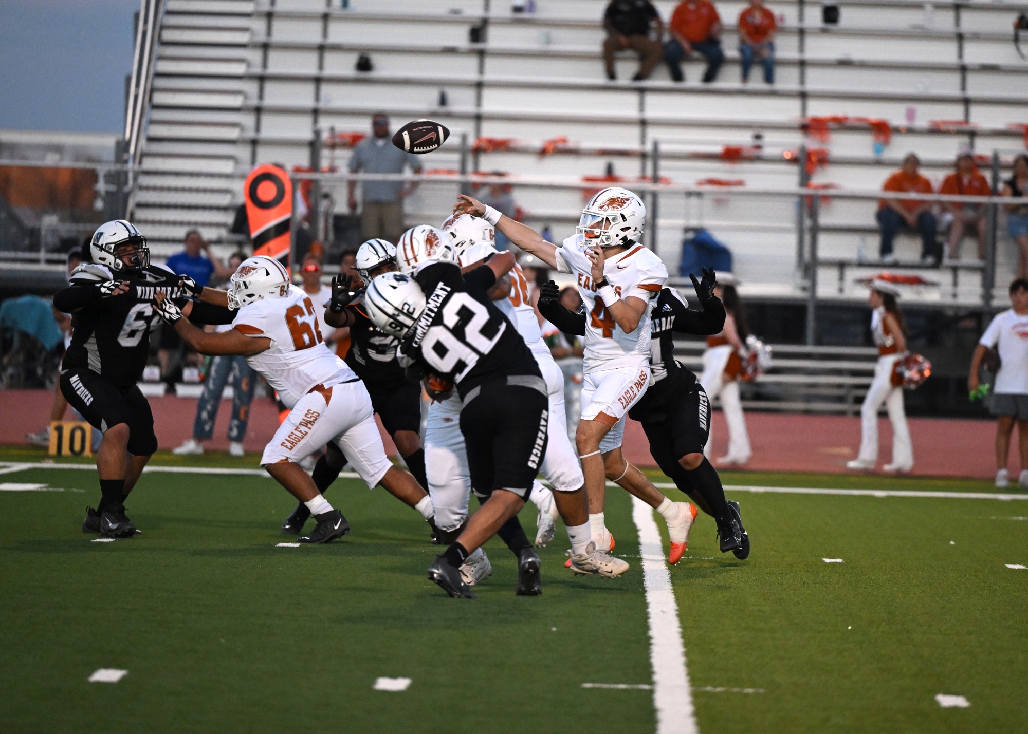 Eagles quarterback Xavier Barrera passed for 190 yards on 15 completions from 19 pass attempts with one touchdown and one interception while Jay Jacquez passed for 65 yards on six completions out of nine pass attempts, totaling 255 yards passing.