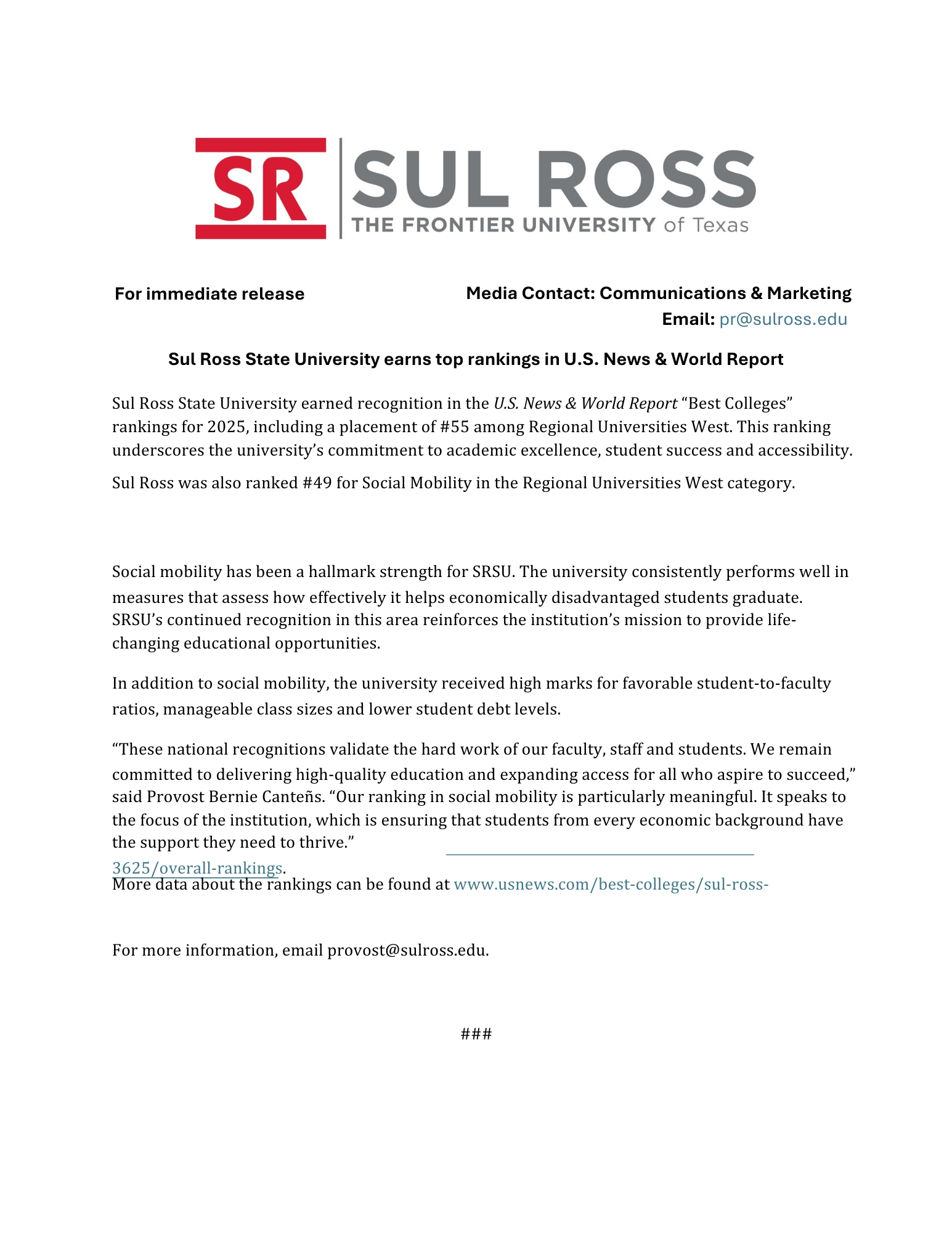 Sul Ross State University Earns Top Rankings in U.S. News & World Report - Eagle Pass Business Journal
